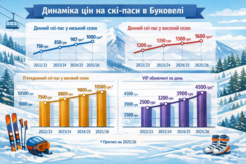 У листопаді 2025 року курорт офіційно оновив тарифи на скіпас. За даними українських медіа, денний абонемент у низький сезон тепер стартує приблизно від 907 гривень, а популярний триденний «ланцюжок» на дні підряд коштує близько 3100 гривень.