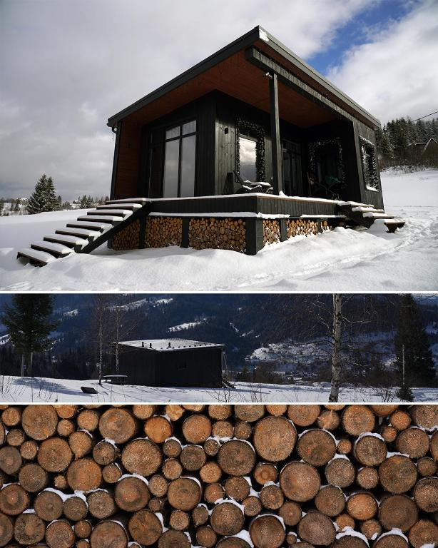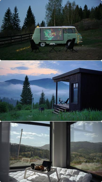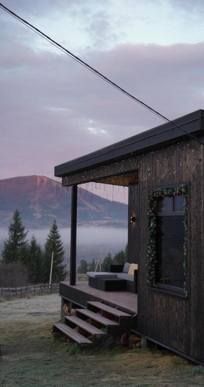Будинок площею 35 м² спроектований як сучасна студія, що здатна комфортно розмістити від 2 до 4 осіб. Основною архітектурною перевагою є величезні вікна, з яких відкриваються види на ключові вершини регіону: гору Тростян, Погар та Високий Верх. Це створює відчуття безпосередньої присутності в центрі гірського масиву прямо з вітальні.