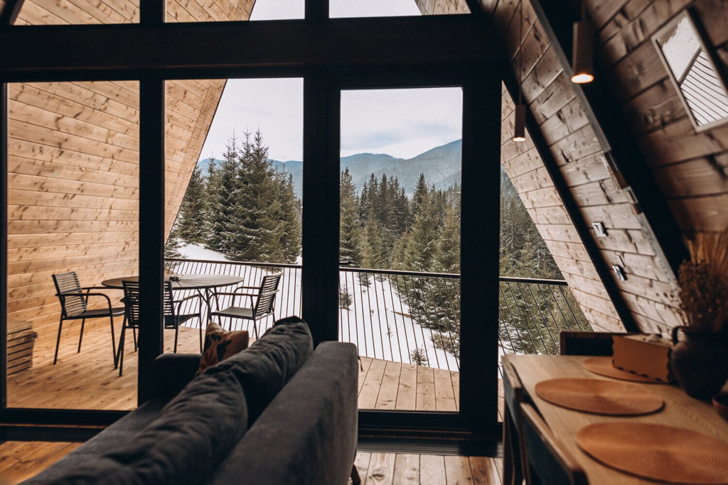 З практичних дрібниць, які варто знати заздалегідь: заїзд у котеджі стартує з 15:00, а виїзд запланований до 11:00. Якщо подорожуєте з улюбленцем, на локації зазначають додаткову оплату за прибирання. Для відновлення після треків доступні два чани у лісі, їх бронюють окремо.