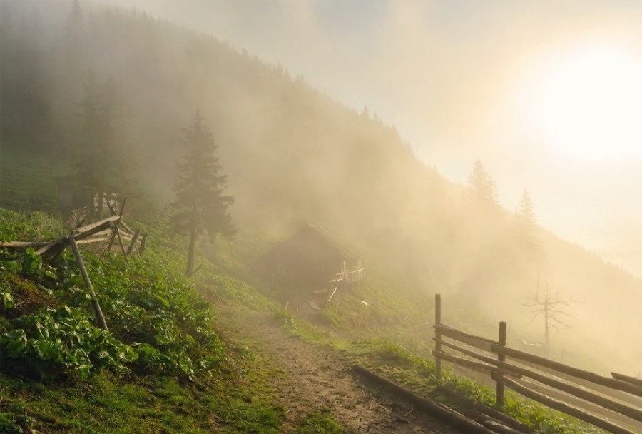 - Лінії хмар, які рухаються над вершинами і створюють мальовничі тіні.